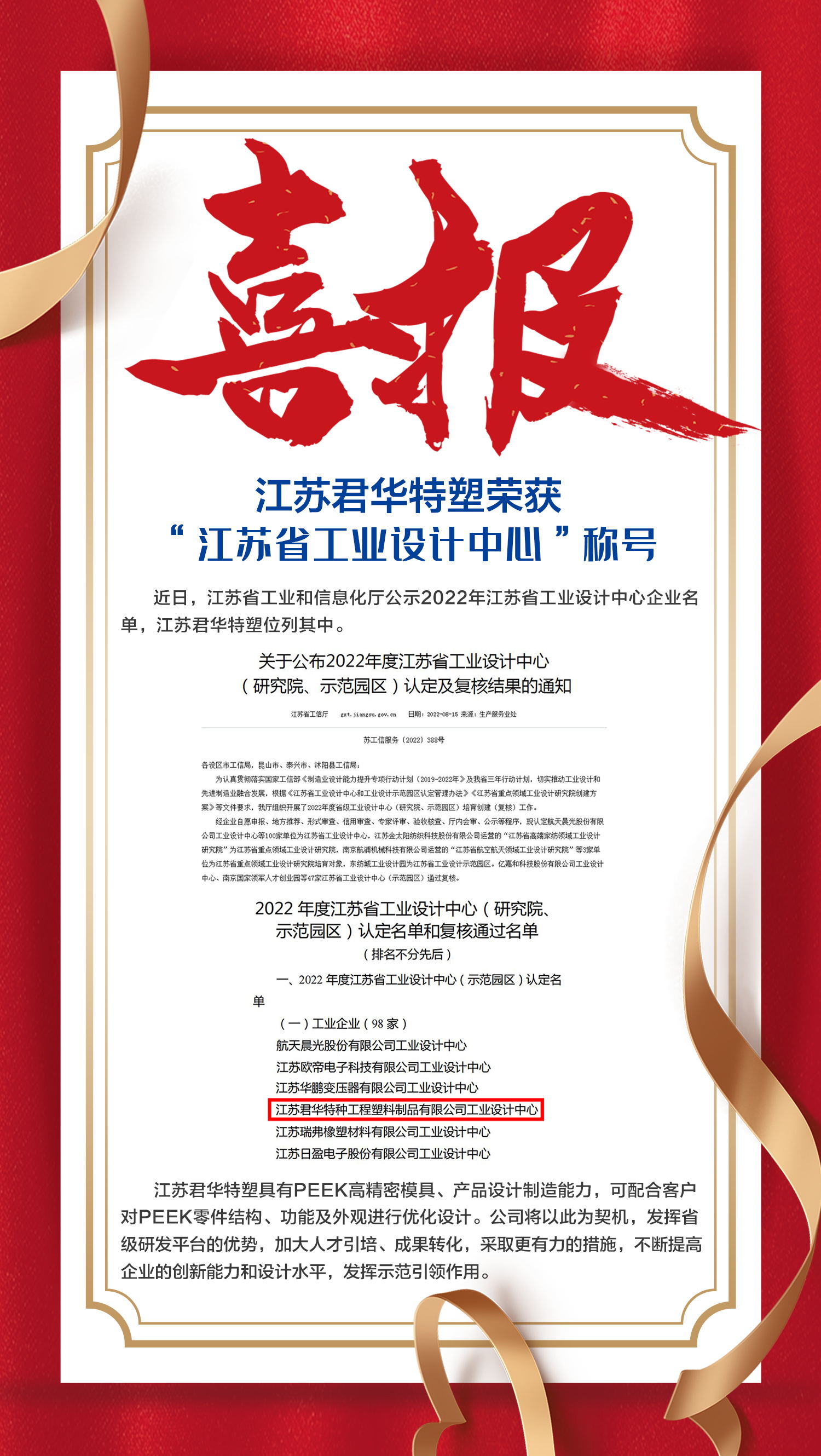 雙喜臨門丨江蘇君華特塑獲評省級企業(yè)技術(shù)及省級工業(yè)設(shè)計中心 分類: 企業(yè)新聞, 新聞資訊 日期: 2022-08-24 閱讀量: 144 雙喜臨門丨江蘇君華特塑獲評省級企業(yè)技術(shù)及省級工業(yè)設(shè)計中心 標(biāo)簽: 企業(yè)新聞